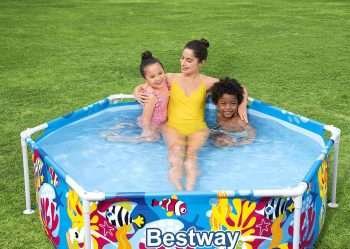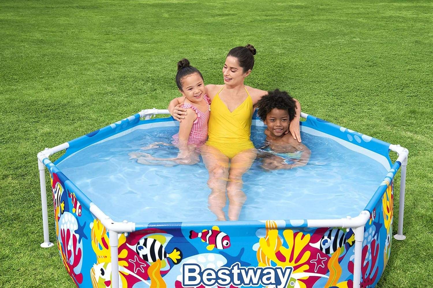 Bestway 5618T | Size 6.0 x 6.0 x 1.6 Ft | Steel Pro Round Metal Frame Portable Splash-in-Shade Swimming Pool