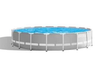 Intex 26731EH | Size 18.0 x 18.0 x 4.00 Ft | Prism Frame Round Metal Frame Portable Ready-Made Swimming Pool